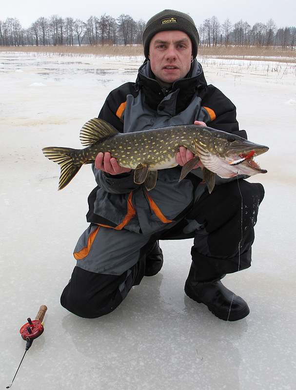 Второе условия – это относительно большой диаметр ледобура, дающий возможность ловить крупную рыбу. До этого моим основным инструментом был бур со шнеком 110 мм. Для поиска рыбы он подходил неплохо, но вот с реализацией поклевок стали возникать проблемы – неплохую щуку с трудом удавалось заводить в лунку такого диаметра. Однажды даже пришлось засучивать рукав и брать хищницу рукой. Благо, лед еще был не толстый. Да и со средней по размеру щукой приходилось повозиться, а за это время она часто успевала сойти. Плюс ко всему, передний крючок балансира так и норовит во время вываживания зацепиться на нижнюю кромку льда. В итоге после нескольких досадных сходов я понял, что мне нужен ледобур диаметром побольше. Тот, который имелся в наличии – шведская 130-ка, годился только для первого льда – сверлил он медленно и быстро утомлял.