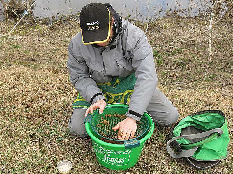 Теперь что касается прикормки. Иной раз случается, что лучше клюет у тех рыболовов, которые не утруждают себя приготовлением хитрых смесей, а довольствуются элементарной перловкой, которую насаживают и на крючок. Периодически горсть зерен они просто подбрасывают к месту ловли. Я так делаю редко, стараясь все же собрать карася в точке ловли именно посредством ароматов и разнообразием пищевых частиц. Но если ловлю на перловку, то в прикормку добавляю ее обязательно. Уже после того, как замешаю смесь на основе прикормки какой-либо специализированной серии. Это не обязательно должна быть карасиная прикормка, например, я использовал карповую смесь Sensas 3000 Club Carp.