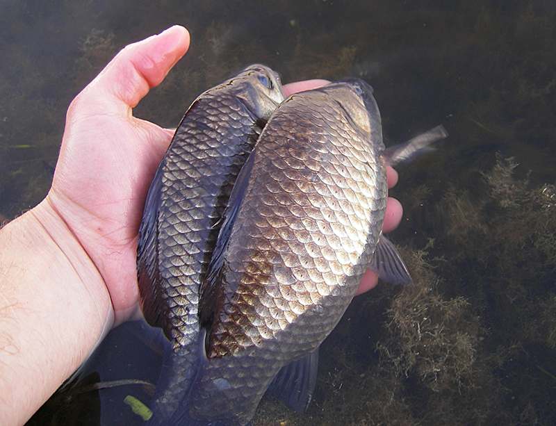 Для целенаправленной карасиной рыбалки у меня на примете есть несколько водоемов совершенно разных типов. Это может быть сапропелевое озеро, обильно поросшее телорезом и другой растительностью, неглубокий дачный пруд, мелководное водохранилище или его затон, речная старица или мелиоративный канал. Несмотря на различия водоемов по своему происхождению, условия ловли здесь могут быть похожими и пригодными для маховой ловли с берега.