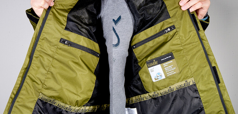Мембранная ткань костюма не претерпела изменений – это все та же мембрана NORTEX® с показателями 4000 мм по влагоотводу и 3000 г/м²/24ч по паропроницаемости. На первый взгляд, может показаться, что таких характеристик маловато для рыбалки в дождливую погоду. Но часто ли мы с вами отправляемся на рыбалку в сильный дождь? Надо полагать, что нет. Кратковременные осадки данная ткань в сочетании с проклеенными швами держит отлично, тем самым подходит под большинство наших рыбалок.