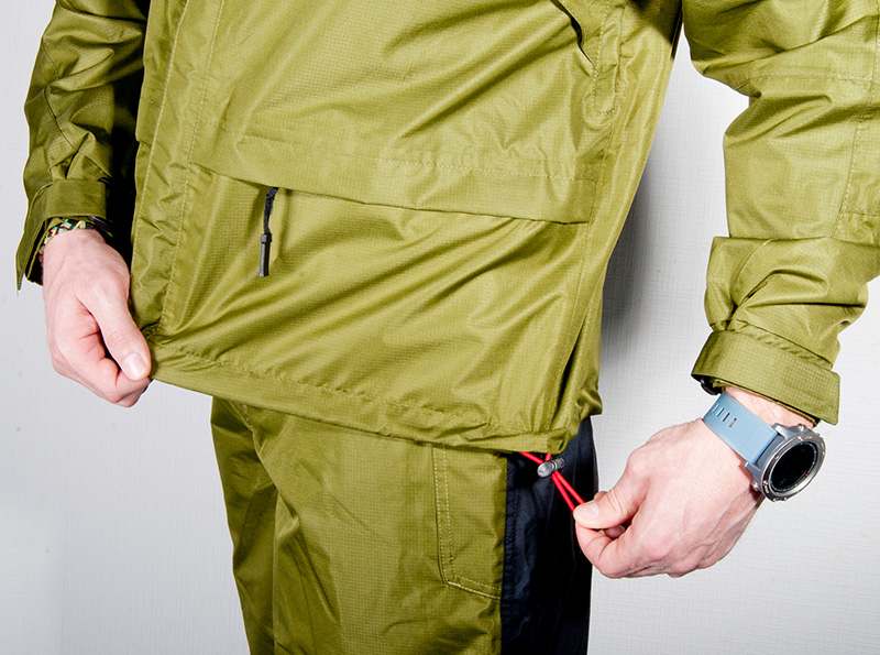 Низ куртки имеет эластичную стяжку с фиксаторами.