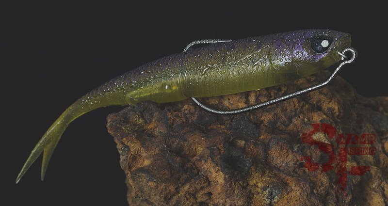 Однако же самые крупные размеры (5 и 6 дюймов) интереснее все-таки подавать именно как джерк. Тем не менее, с флюками вообще и с Makora Split Tail в частности все не так просто. Дело в том, что это все-таки неиграющая приманка и на нее едва ли удастся поймать с равномерной проводкой. Надо дергать. Но и тут закавыка – горизонтальный хвост. Более того, здесь мы видим один из самых массивных «вилочных» хвостиков в джерковом семействе. Вообще, на хвосты мягких джерков мало обращают внимание и совершенно напрасно. Потому как понимание зависимости движения от геометрии даст максимально полное представление о выгодных сторонах и о том, где и когда приманку использовать лучше.