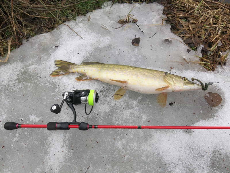 Да и сам я меньшими весами ловлю реже – для этого есть специальные микроджиговые спиннинги. Основные грузы – 10-12 г, плюс приманка до 4-х дюймов. В джиговой ловле люблю хорошую чувствительность вершинки, и лайтовая ловля здесь не исключение. В итоге «красный Сенсорик» стал моим основным удилищем для ловли щуки с берега. В щучьем лодочном джиге чаще всего использую его в ветреную погоду и на мягком дне.