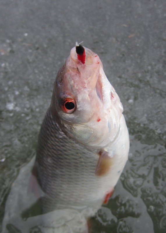 Прикармливания рыбалка среди корчей не требует. Рыба уже собрана в одной точке и ее надо лишь поймать. Так что прикорм может оказаться лишним. Если его и применять, то лишь в определенных ситуациях и умеренно. Классически для этих целей лучше всего подходит мотыль. Он точно не навредит, ибо постоянно обитает в водоеме. При ловле красноперки и плотвы при ослаблении клева сыплю в лунку немного сухой манки или молотого печенья, выдерживаю паузу и затем снова проверяю лунки. Эксперименты всегда уместны.