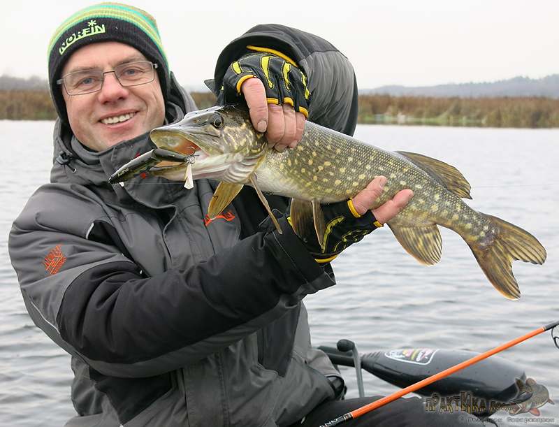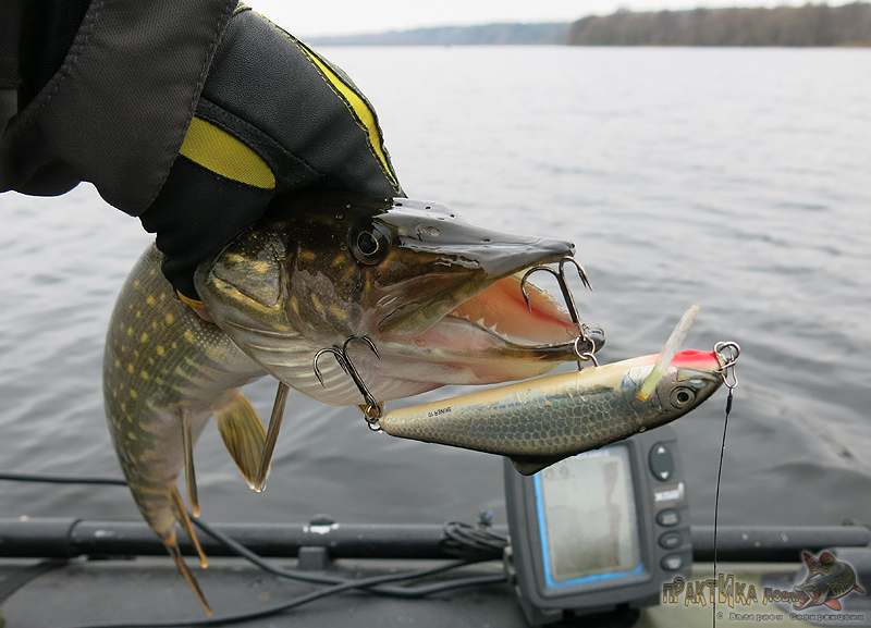 Прежде всего, это некоторые модели воблеров с ярко-выраженной собственной игрой – так называемых крэнкбейтов. Так как они заходят только на заданную глубину и глубже уже не погружаются, ловить такими воблерами довольно просто – выполняем простую равномерную проводку. Можно с какими-либо подтвичиваниями. Так как на мелководье часто ловлю в дрейфе, проводка получается довольно быстрая, когда лодку несет ветром, и паузы практически не делаю. Наоборот, заметил, что щука любит погнаться за приманкой, набирающей ускорение. Иногда проводит ее до самой лодки, только после этого решается на атаку. Вываживание получается накоротке, очень зрелищное.