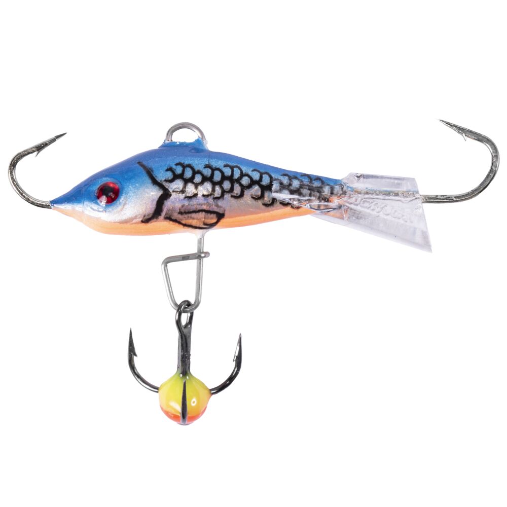 Балансир спереди и сзади имеет традиционные впаянные одинарные крючки от японской компании Kamasan. Под брюшком приманки разместился тройник VMC с яркой пластиковой каплей.