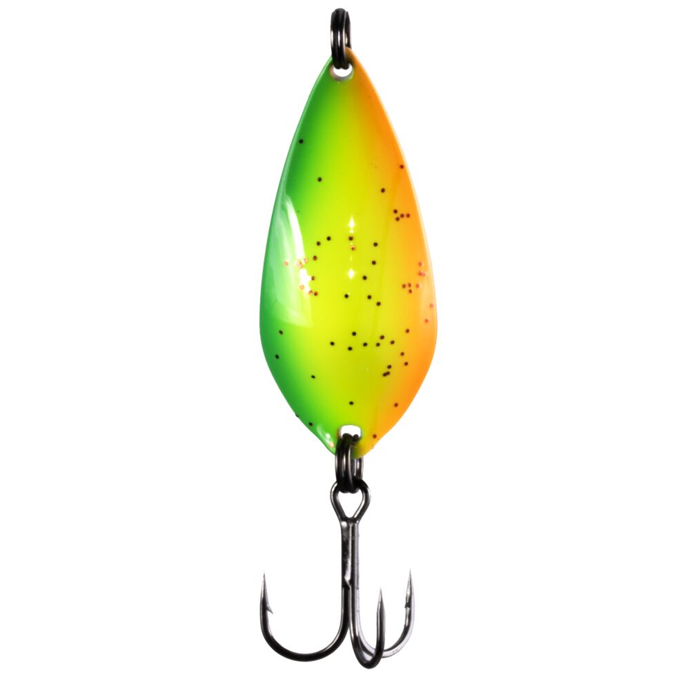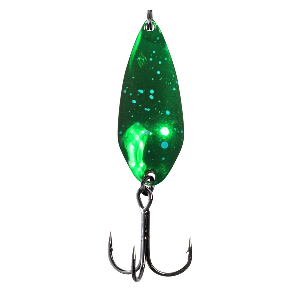 Благодаря незначительному весу, провести блесну можно по самой поверхности воды. Размеры: 1.8; 2.4; 3.5 и 5 г рассчитаны для ловли на мелководье, они комплектуются спортивными одинарными крючками. Блесны весом 8 г отлично подходят для ловли в глубоких местах, они комплектуются тройниками. Блесны EOS оснащены высококачественными японскими крючками и фурнитурой.