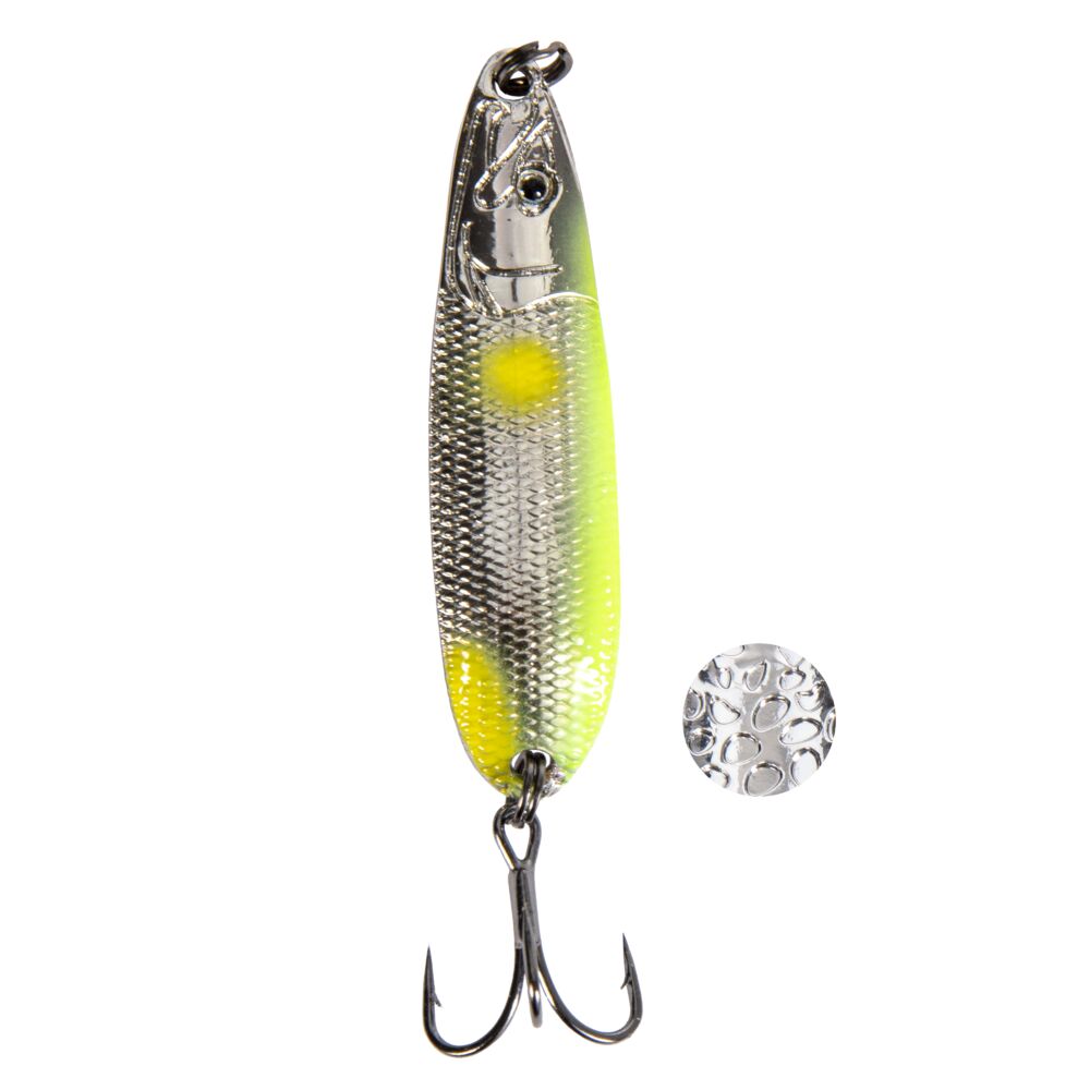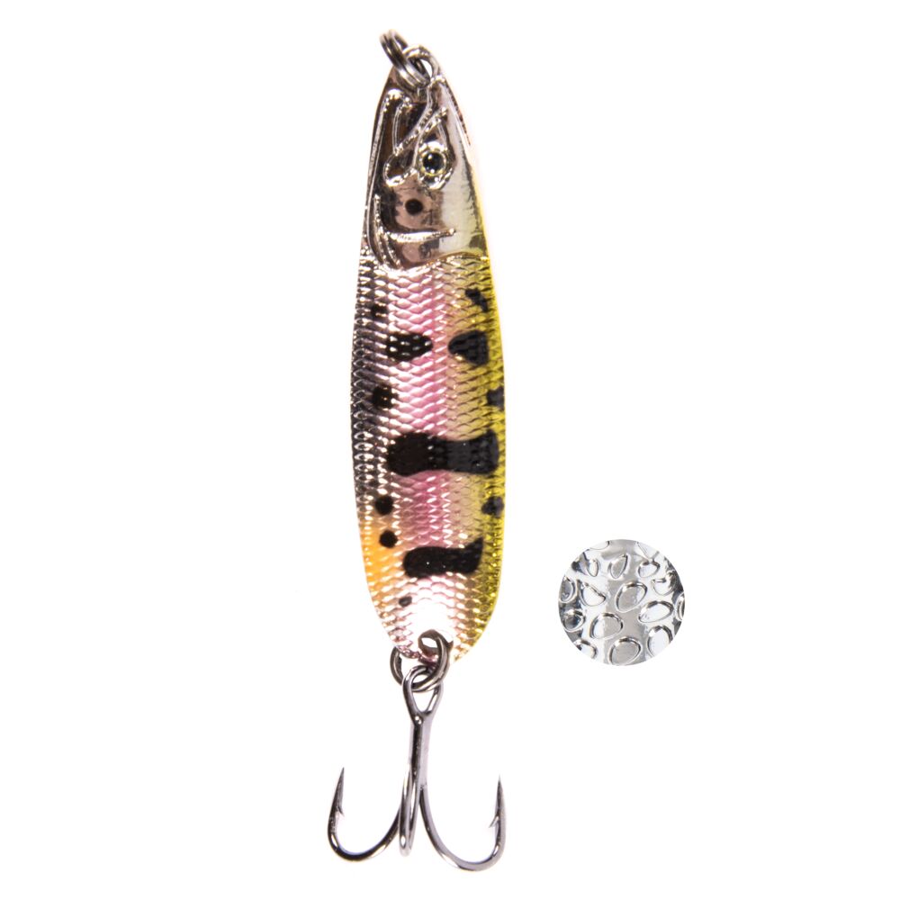 Отличительной чертой блесен является качественное покрытие, которое очень устойчево к истиранию на реках с каменистым дном.