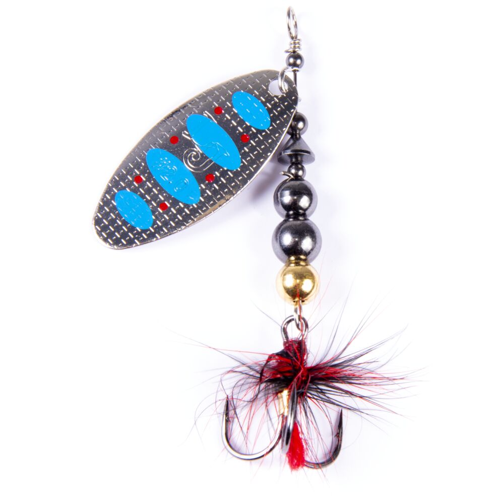 Главный элемент блесен – вращающийся лепесток. Он очень легок, сделан из латуни и обладает хорошими динамическими показателями при вращении в воде, что позволяет делать проводку приманки на минимальной скорости. Лепесток «заводится» сразу, как только блесна начинает движение. Лепестки окрашены с двух сторон. С какой бы стороны хищная рыба не смотрела на приманку, ее расцветка остается одинаковой и привлекательной, что повышает интерес к блесне и, в итоге, приводит к результативной атаке.
