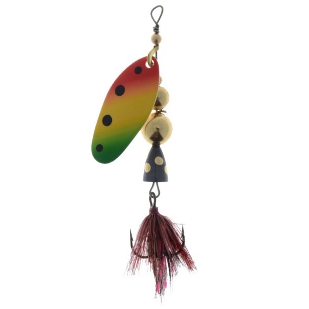 Завлекающий эффект создает и оригинальная мушка на тройнике, которая отличается износостойкостью, и прослужит не один сезон. Особым преимуществом вертушки, также, является конструкция крепежной петли, благодаря которой леска при вращении блесны практически не крутится. Такой принцип крепления позволяет значительно продлить срок службы лески, исключая повреждения из-за постоянных закручиваний.