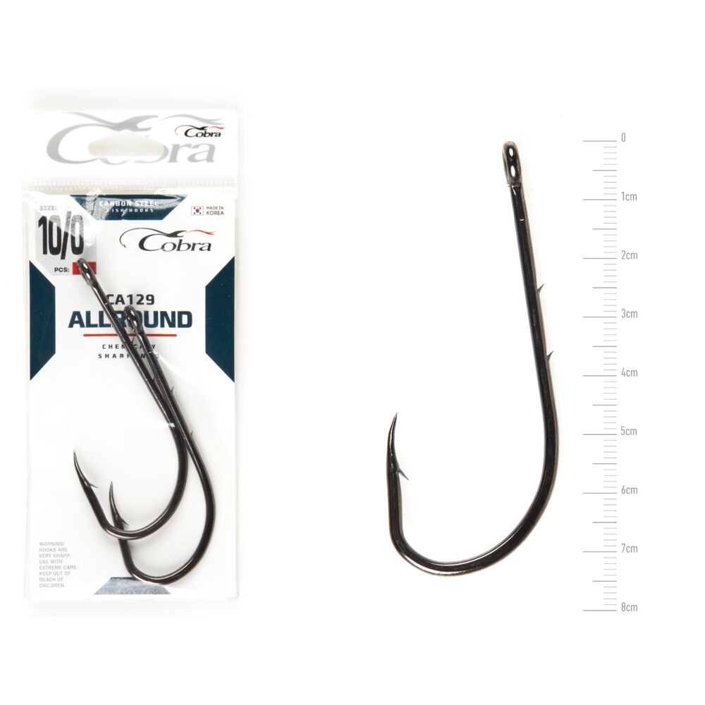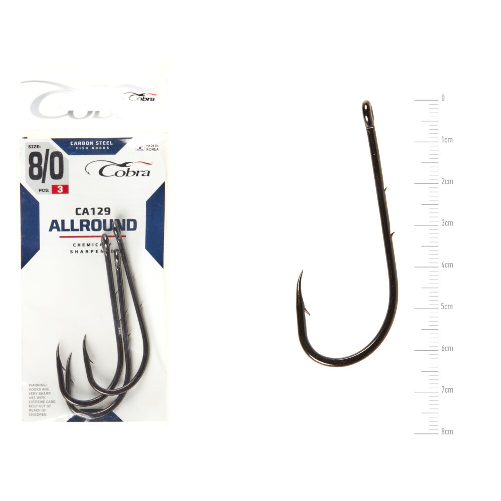 Вид крючка: с колечком, жало с загибом внутрь, поддев отогнут, кованое цевье, насечки на цевье