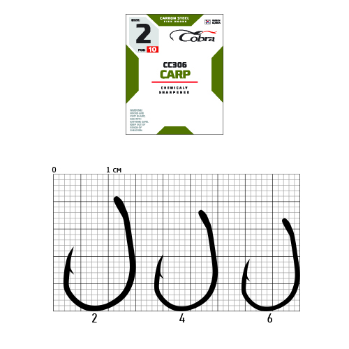 Вид крючка: с колечком, жало с загибом внутрь, поддев прямой, кованое цевье