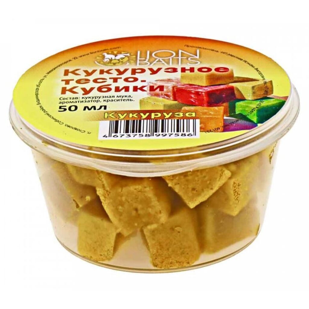 Кубики из кукурузного теста от LION BAITS с ароматом кукурузы – это плотная насадка, приготовленная из кукурузного теста, с добавлением вкусовых ароматизаторов и пищевых красителей, предназначенная для ловли речной и озерной рыбы. За счет плотной структуры теста, они хорошо удерживаются на крючке и выдерживают дальние забросы. После варки тесто нарезается небольшими квадратиками, стороны которых не превышают 10 мм. Тесто имеет яркий вкус и стойкий аромат, возможно использовать и с другими видами насадок включая насадки животного происхождения. При необходимости кубики можно уменьшить в размере, при помощи любого ножа их можно поделить еще на несколько частей, в зависимости от размера используемого крючка. В готовом виде, подходит для ловли на крючки 4-6 размера. При необходимости кубики можно размять руками до состояния мягкого теста, которое также можно с успехом насаживать на крючок.