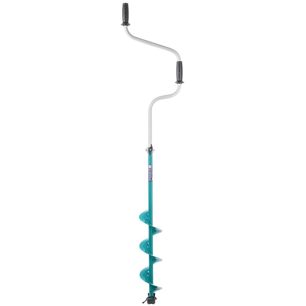 Складная ручка уменьшила транспортировочные размеры ледобура до 83 см. Запатентованный замок помогает быстро привести бур в рабочее положение, а также не дает люфта при использовании. Ледобур легко справляется с бурением метрового льда не смотря на малый размер в сложенном виде.