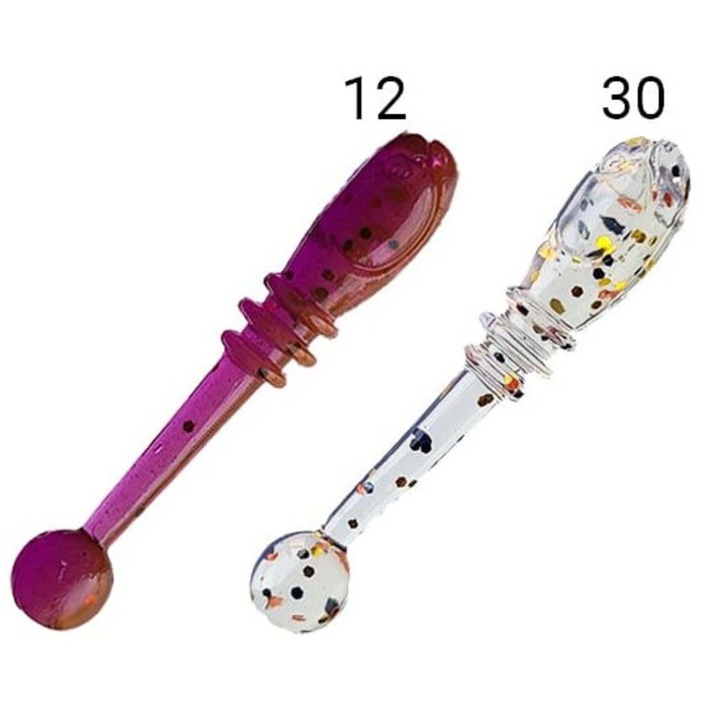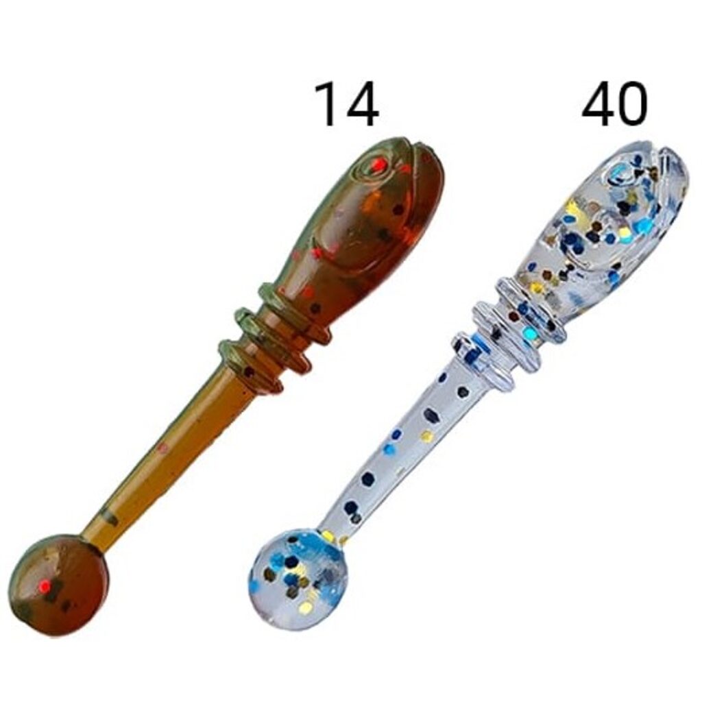 Вытянутое тельце напоминает только что вылупившегося малька. Рифление на передней части имитирует глазки и жаберные крышки. Кольцевые ребра создают дополнительные микровибрации при проводке. Тонкий хвостик утяжелен шарообразным уплотнением, что обеспечивает особую амплитуду колебаний.