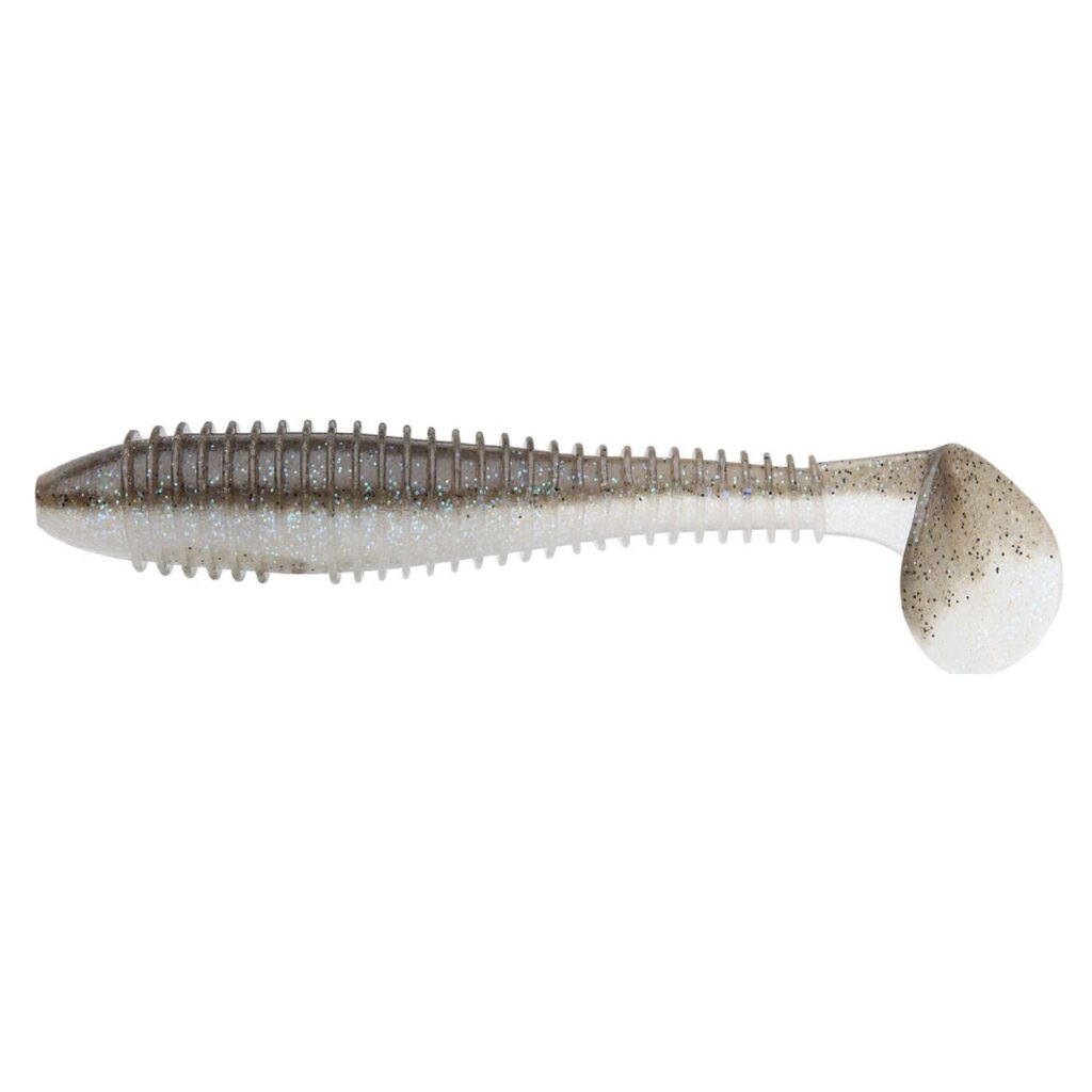Keitech Swing Impact FAT – более массивная версия виброхвоста Keitech Swing Impact. Его вытянутое ребристое тело заканчивается большой хвостовой лопастью. Кроме того, в теле приманки сделана специальная выемка для офсетного крючка, а в передней части приманки нанесена специальная полоса, по которой можно ориентироваться надевая приманку на оффсетный крючок. Это дает возможность лучше скрыть офсетный крючок в теле виброхвоста и избежать неприятных мертвых зацепов и обрывов. В нижней части Swing Impact FAT сделаны два специальных отверстия для съемных грузов-гвоздиков, с помощью которых можно дополнительно подгрузить приманку при использовании в качестве свимбейта, без внешнего грузила. Отверстия расположены оптимальным образом для достижения идеального баланса приманки при наличии в них грузил.