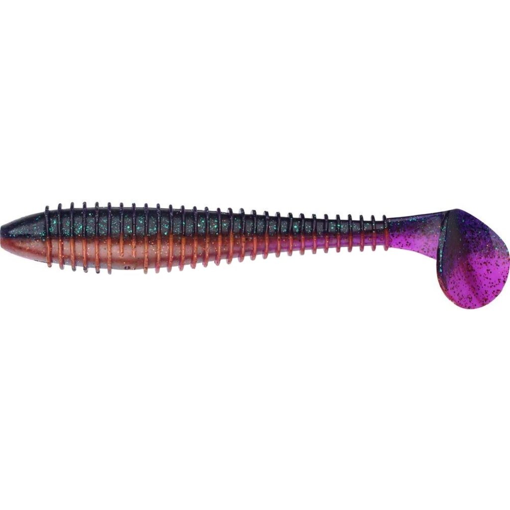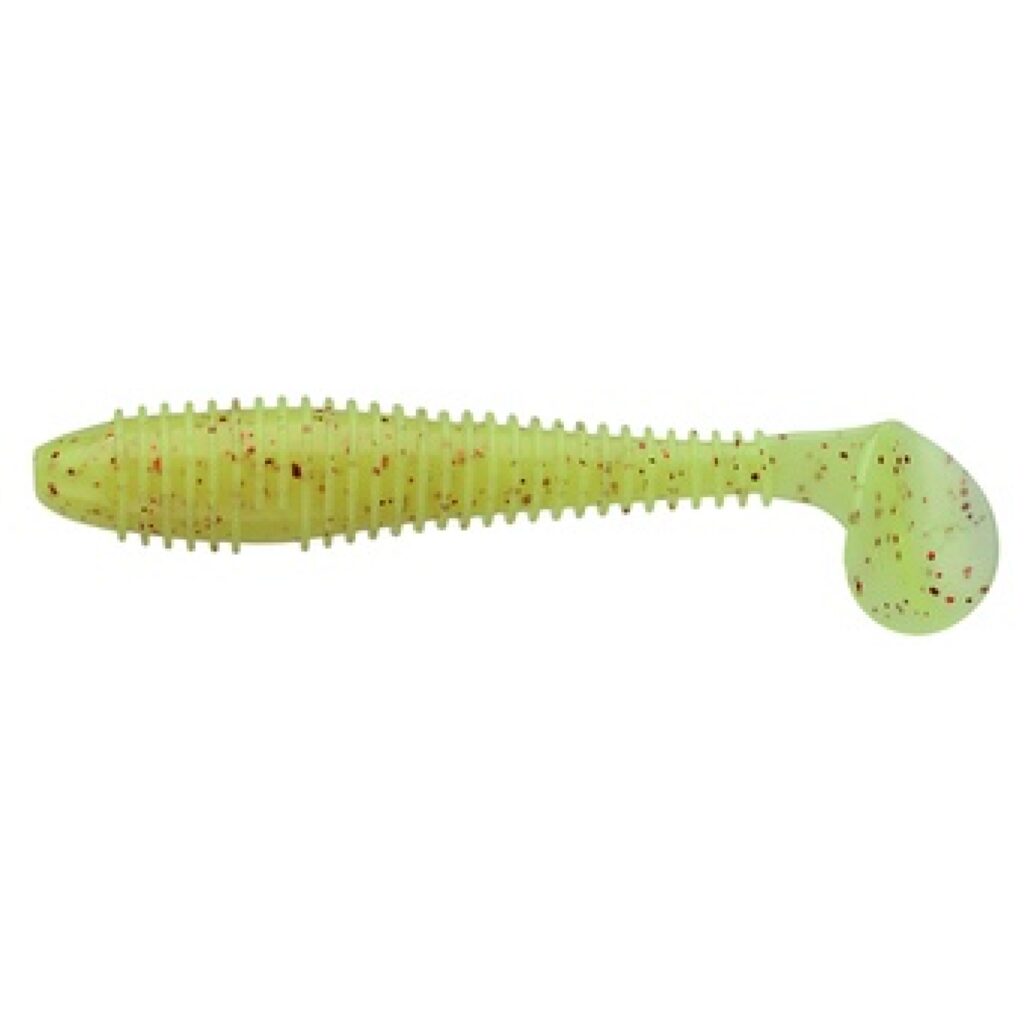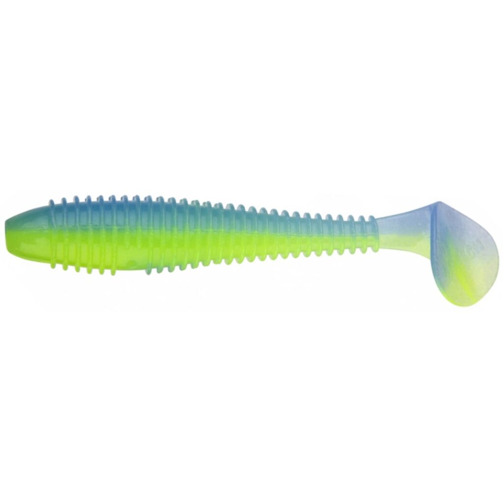 Помимо конструктивных отличий приманка Swing Impact FAT отличается весьма активной игрой. Достигается это использованием очень мягкого силикона. Увеличивает активность игры и то, что ребристое, утолщенное, червеобразное тело приманки соединено с широкой пяткой хвоста тонкой перемычкой. Поэтому хвост заводится мгновенно и совершает, привлекающие хищника, движения даже при очень медленной проводке. Поперечная ребристость наделяет тело приманки дополнительной парусностью, что улучшает не только подвижность и игру виброхвоста, но и создает привлекательные звуковые колебания. У Keitech Swing Impact FAT более агрессивная игра, чем у младшей версии. Поэтому данный виброхвост как нельзя лучше подходит для тяжелых оснасток.