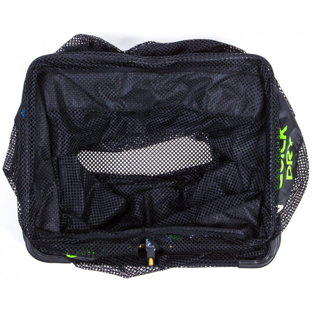 Также садок имеет ряд особенностей - вынесенные наружу опорные кольца с резиновыми защитными рукавами на каждом кольце (отлично защищающие полотно от истирания при ловле на бетонной дамбе либо камнях), цельная верхняя секция из плотногой ПВХ (предотвращает зацеп крючком во время темповой ловли), механизм изменения угла наклона ручки (Fix Aangle) и встроенный упор для удилищ.