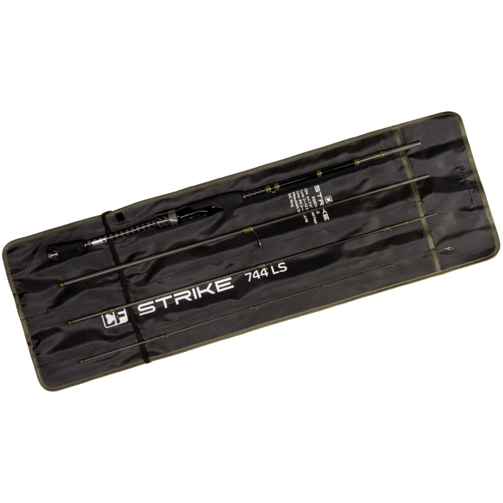 Strike 744 LS — звонкий инструмент длиной 224 см и тестом 2—12 грамм для ловли с берега и лодки, использования джига, разнесенных оснасток, блесен разных форм и размеров, воблеров минноу и кренков на равномерной проводке. Бланк создан из карбона Mitsubishi 30T со связующими нового поколения, благодаря чему спиннинг получился чувствительным, лёгким, упругим и надежным.