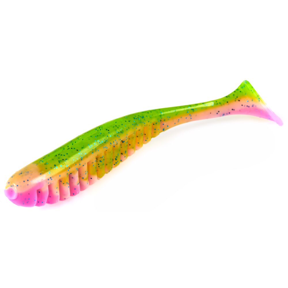 Основным плюсом приманки, отличающих его от других серий виброхвостов, является выемки по принщипу "радиатора" с боков приманки, что наделяет резину высокой, дополнительной подвижностью.