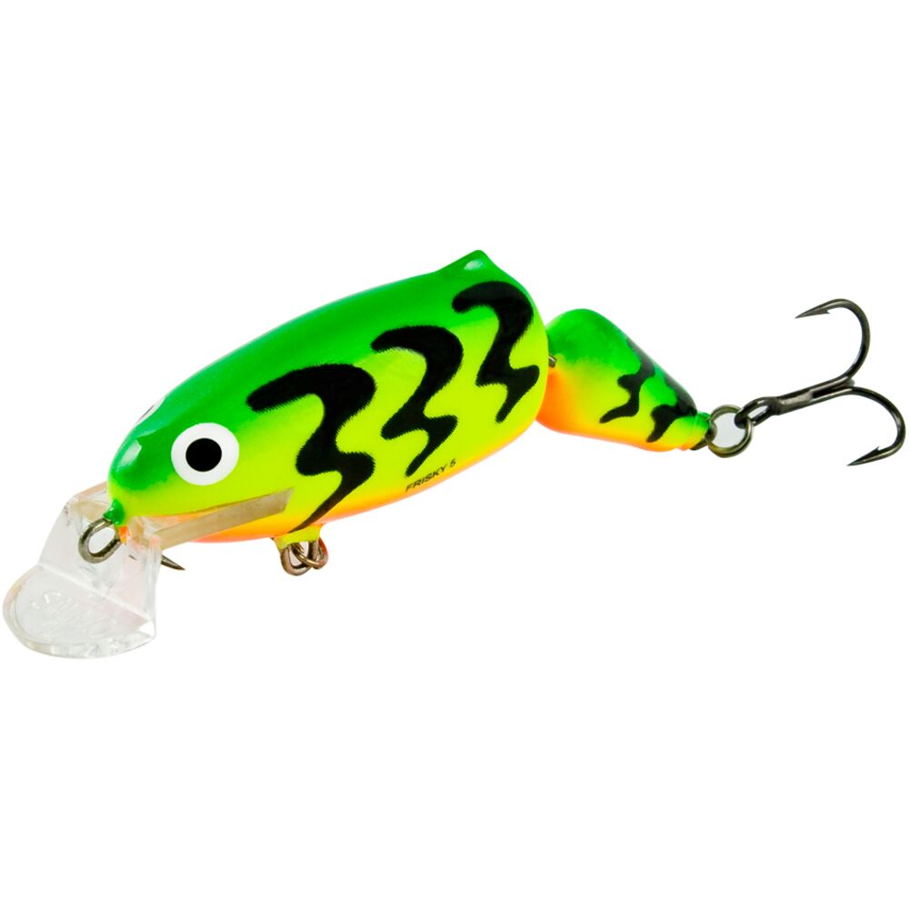 FRISKY – плавающая приманка с невысокой плавучестью, позволяющей ей медленно всплывать во время паузы, что делает ее очень эффективной для ловли, при забросах ее вниз или вверх по течению. Также отличные результаты могут быть достигнуты, ловя рыбу поперёк течения с обязательными паузами при проводке. Мы рекомендуем, чтобы этот тип проводки был следующим: два или три поворота ручкой катушки, затем пауза, при которой кончиком спиннинга выбирается провис лески, затем цикл повторяется. В озерах и водохранилищах ловят рыбу FRISKY так же, как и с большинством других плавающих приманок – с изменением скорости подмотки, с частыми паузами и нежным подергиванием приманки.