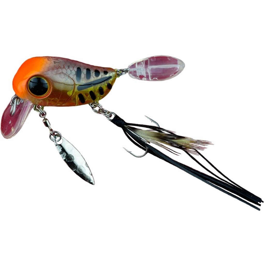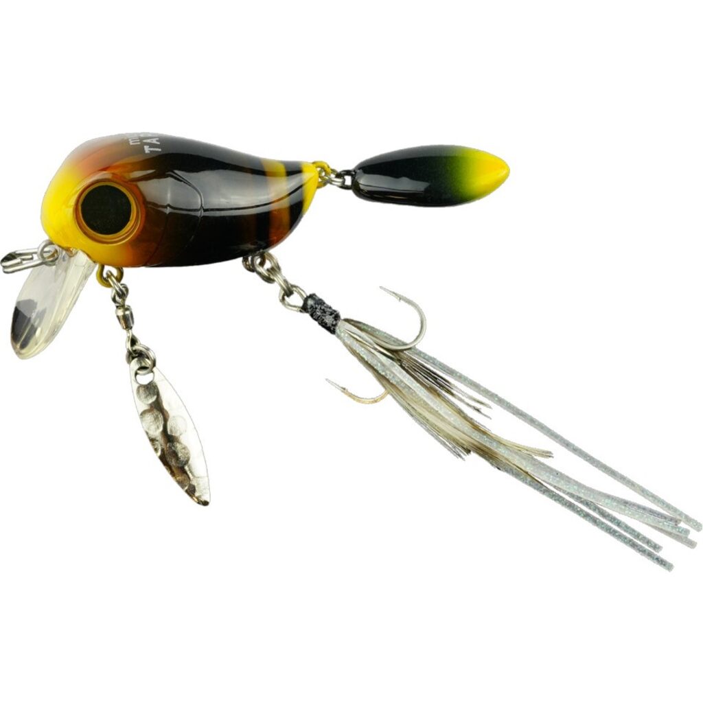 Единственный тройник расположен на животе и дополнен дополнительными «аксессуарами» из комбинации перьев и силиконовых полосок. Это обеспечивает стабилизацию воблера, дает возможность спрятать тройник, создать дополнительную игру, которая привлечет хищника.