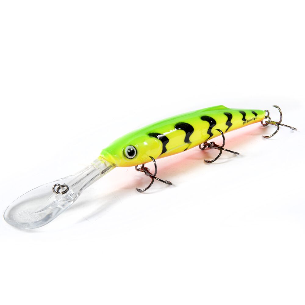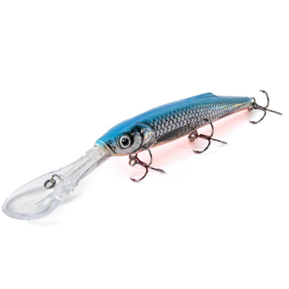Это плавающий, глубоководный воблер удлиненной формы и с большой лопастью из поликарбоната, позволяющей ему достигать глубины 5 метров при забросе и 9 при троллинге.