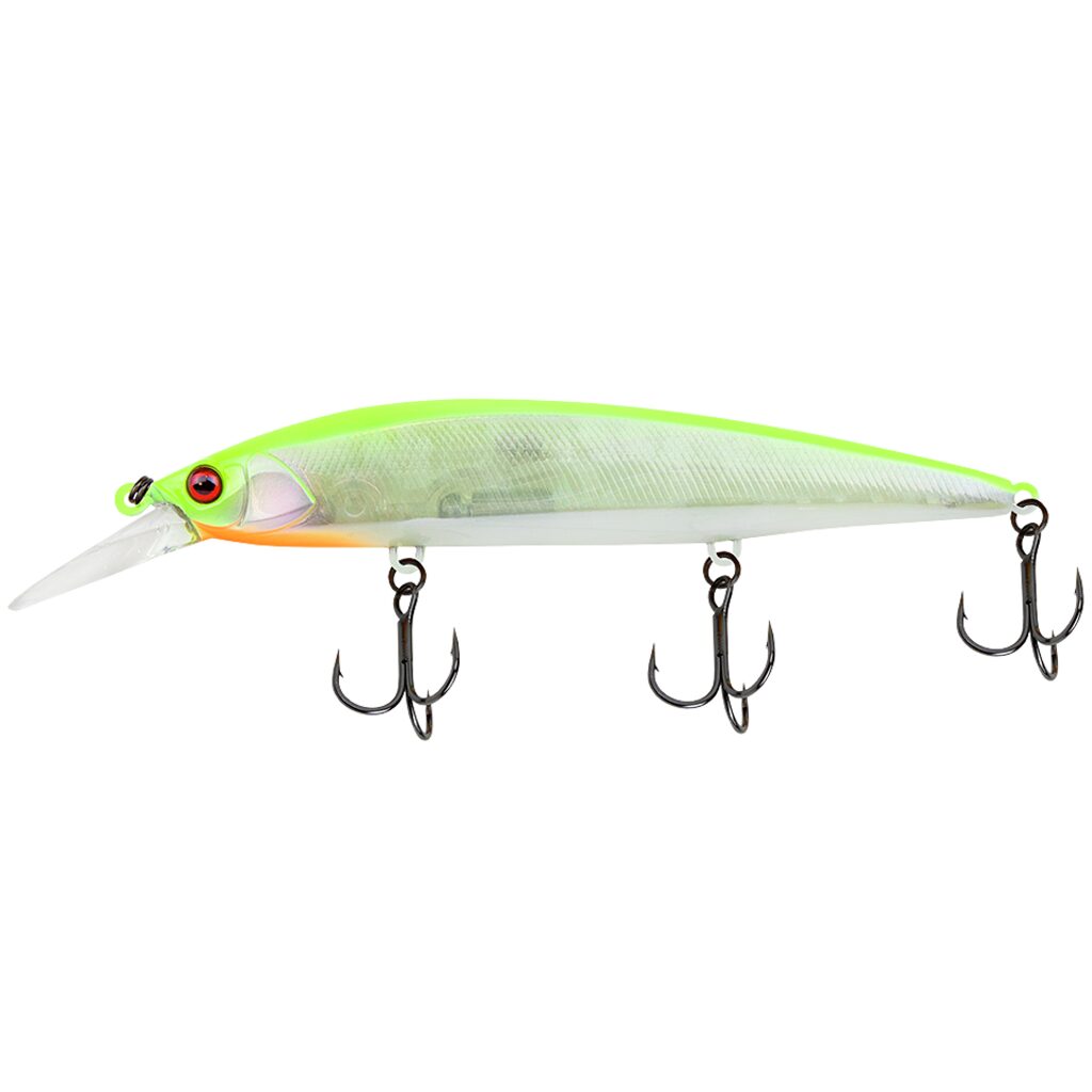 Воблер Jackall Rerange 130 SP-MR оснащен отличной японской фурнитурой – три качественных надежных тройника подвешены через заводные кольца на мощные петли. Их прочностные характеристики позволяют применять приманку для поиска и вылова трофейной щуки без опасения разгибания крючков или заводных колец.