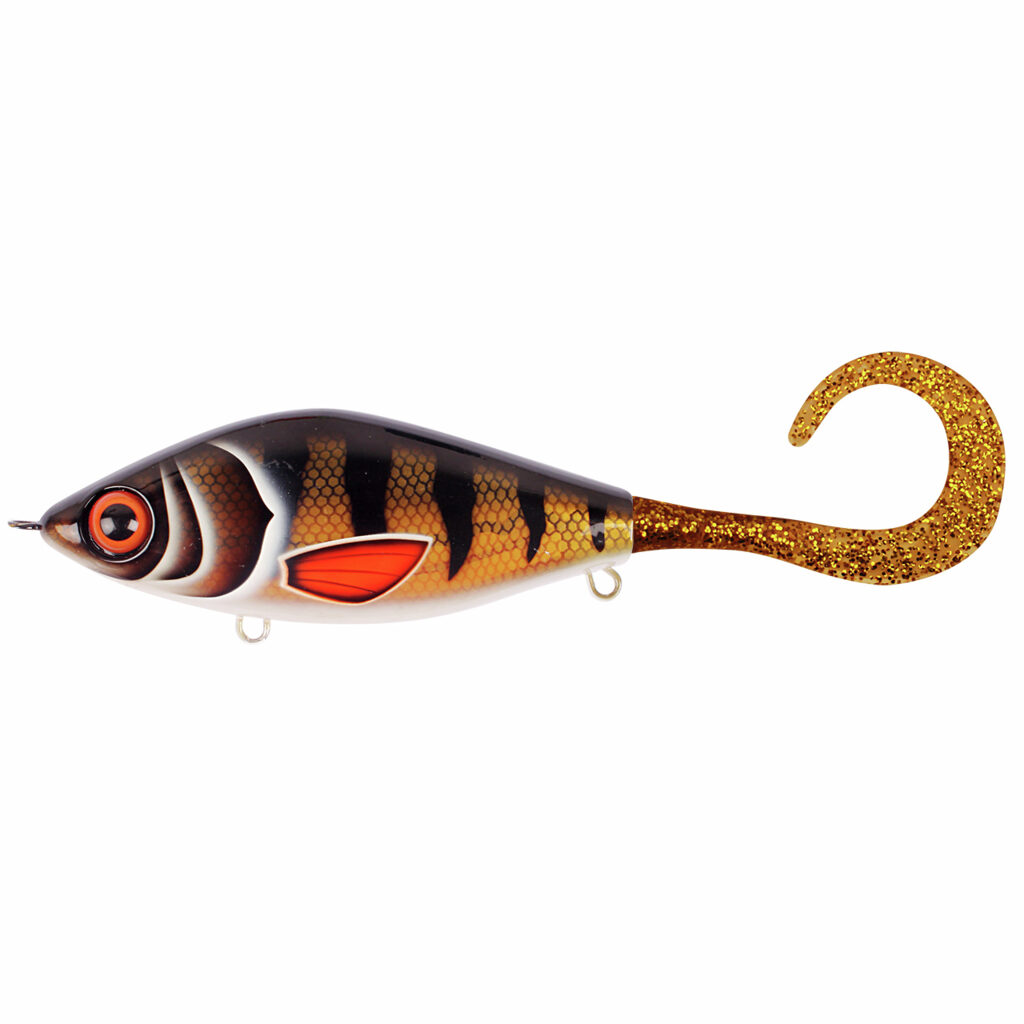 Модель комплектуется двумя хвостами, один из которых твистерный, а другой — как у виброхвоста. Спиннингист может менять их в зависимости от ситуации. Надежность крепления хвоста обеспечивается встроенным в тело джеркбейта штопором.