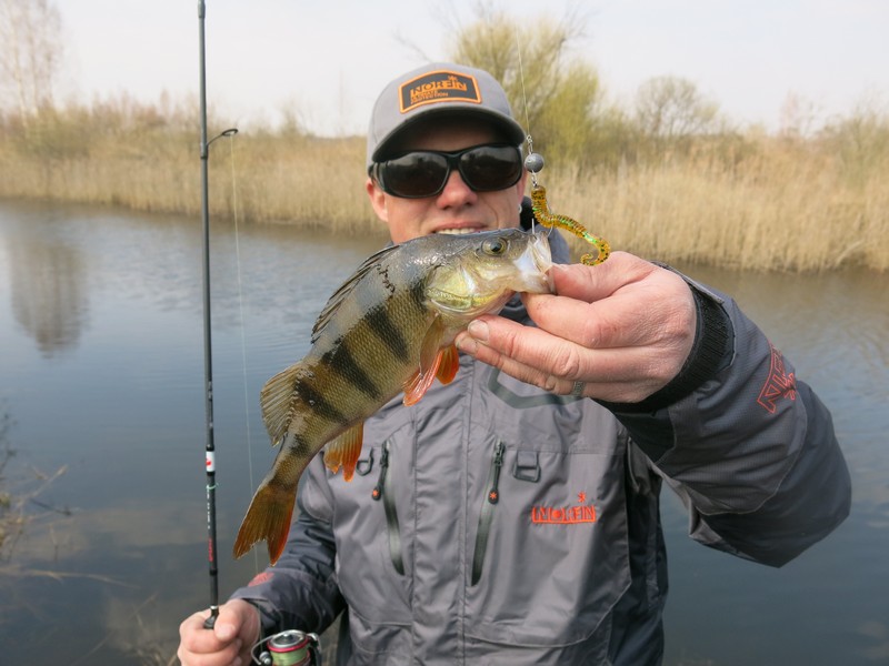 Днем же по весеннему окуню нередко выстреливает так называемая «тыква» или «карамелька» – PA19 Osaka Pumpkin. До весны этого года я ловил на этот цвет в основном на небольших прудах, но в апреле 2019-го он неплохо отработал на торфяниках. Вообще, когда ловлю окуня, то больше всего перебираю цвета именно небольших «Баллистов».