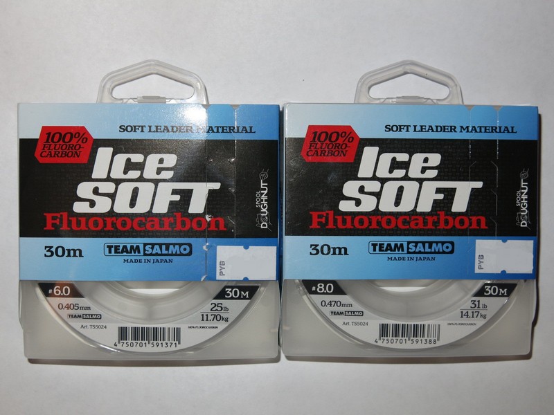 С начала осени стал пользоваться леской Team Salmo Ice Soft Flurocarbon, которая изготавливается и разматывается в Японии. Несмотря на ее «зимнюю» принадлежность, судя по названию, в спиннинге она вполне подошла. Узлы хорошо затягиваются даже в диаметре 0,47 мм.