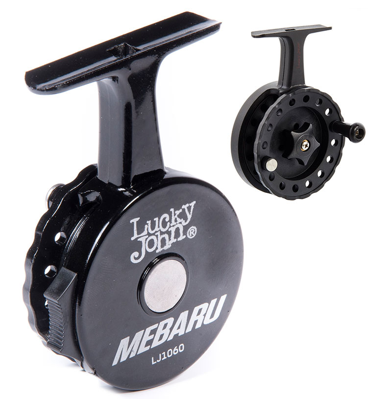 Сначала немножко технических данных катушки Lucky John Mebaru. Доступно два варианта со шпулями диаметром 75 и 60 мм по габариту. Сделаны они из морозостойкого ударопрочного пластика – карбопласта. Вес катушек 67 и 87 грамм. У катушек по 2 шарикоподшипника – свободный ход шпули очень легкий. На торце корпуса катушки установлен стопор обратного хода, сбоку, по центру шпули – звездчатая гайка фрикциона.