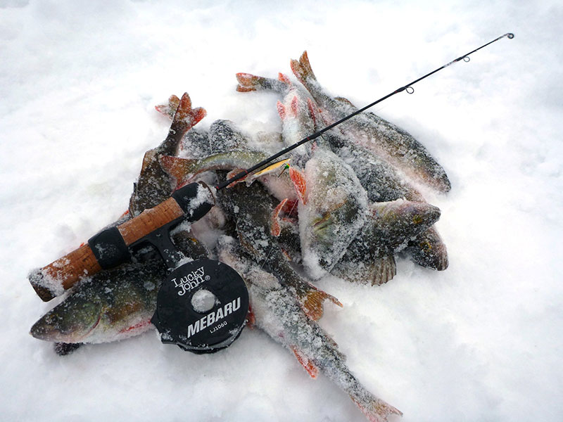 Описываемый мной комплект удочек Perch Soft с катушкой Mebaru меня полностью устраивает. Быстро и легко меняется глубина ловли, так как очень часто приходится ловить окуня с 9 метров глубины и постоянно переходить с одной лунки на другую. Да и во время поиска рыбы по глубине, приманку приходится подымать ото дна под самый лед и наоборот, постоянно играя балансиром.