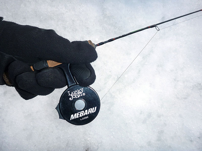Высокие ножки катушки Lucky John Mebaru позволяют ловить рыбу, не снимая рукавиц – очень удобно, и хват удочки надежный. При поклевке крупной рыбы удочку не вырвет из рук.