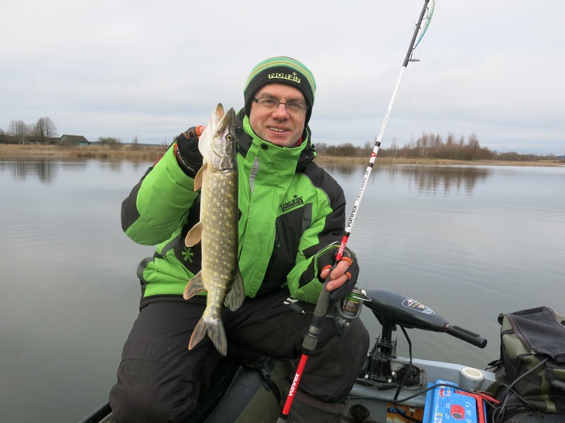 К предстоящему зимнему сезону переоделся в новый костюм, но крепкий лед в наших краях так и не появился, поэтому стал его использовать в ловле спиннингом. Речь идет о модели Norfin Discovery 2 Green.