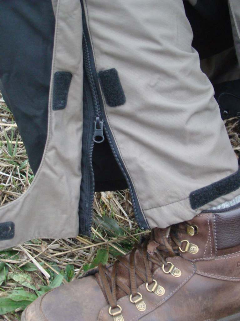 В самой нижней части штанин имеется две молнии для удобства надевания сапог.