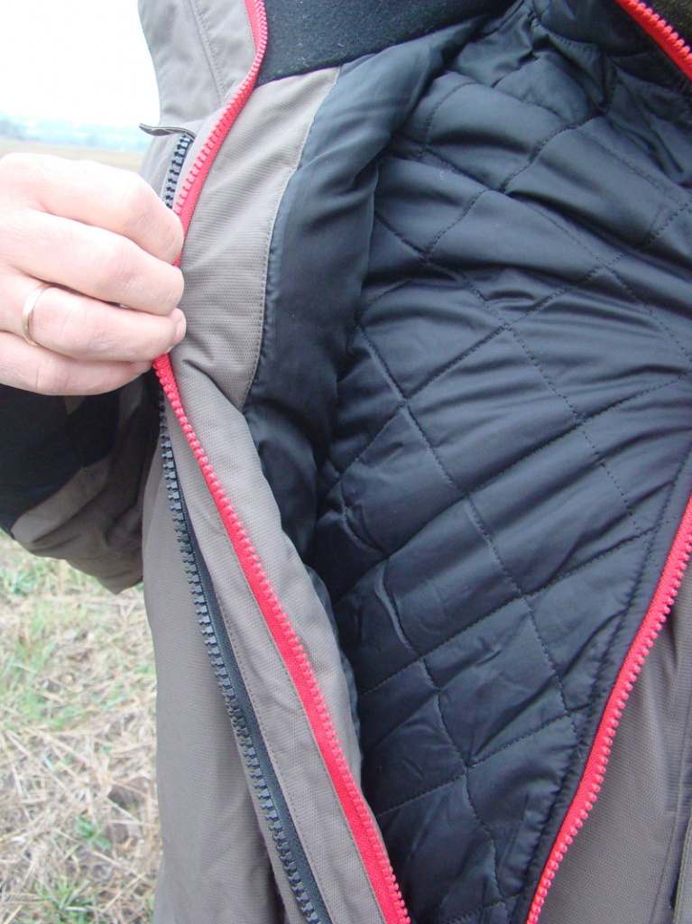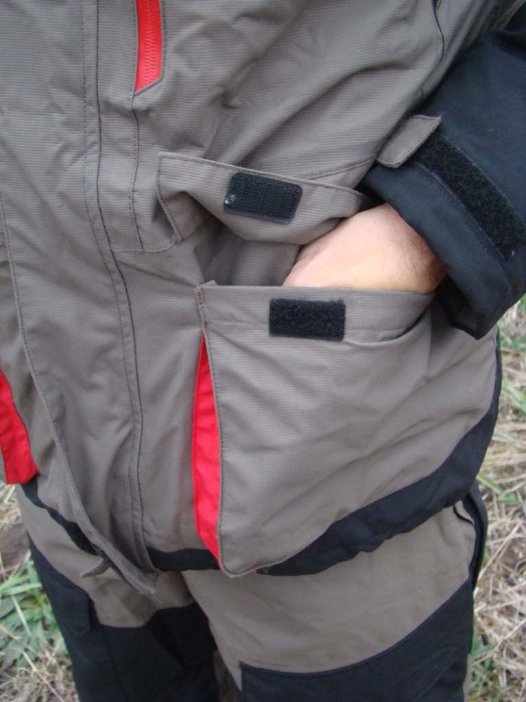Я большой любитель ловли рыбы на безнасадочную мормышку. Способ этот весьма активный, и о применении утепленных рукавиц не может быть и речи. Так вот, всю прошлую зиму я отрыбачил в тонких неопреновых перчатках, у которых еще и пальцы были обрезаны. Руки практически не мерзли. А во время переходов я просто прятал их в теплые нагрудные карманы. Кроме этих карманов имеется у куртки еще две пары наружных и один внутренний, теплый карман для документов. Наружные нагрудные карманы закрываются на водонепроницаемый замок-молнию.