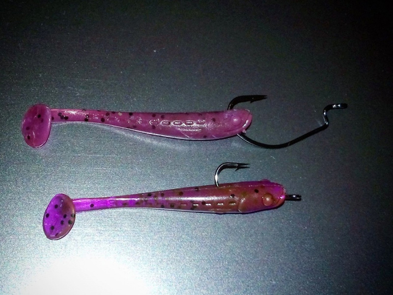 Для оснащения отлично подходит крючок #10 Owner. Офсетами в микроджиге я пользуюсь крайне редко. Однако один из моих знакомых оснащает Baby Rockfish только ими, продевая жало, как показано на фото — через головную часть. В чем смысл этого, я так и не понял, по его словам приманка играет лучше.