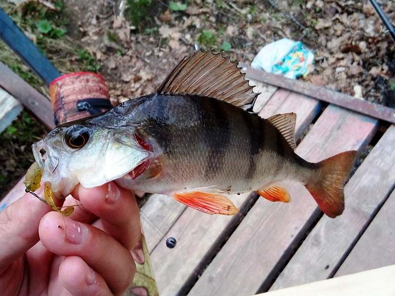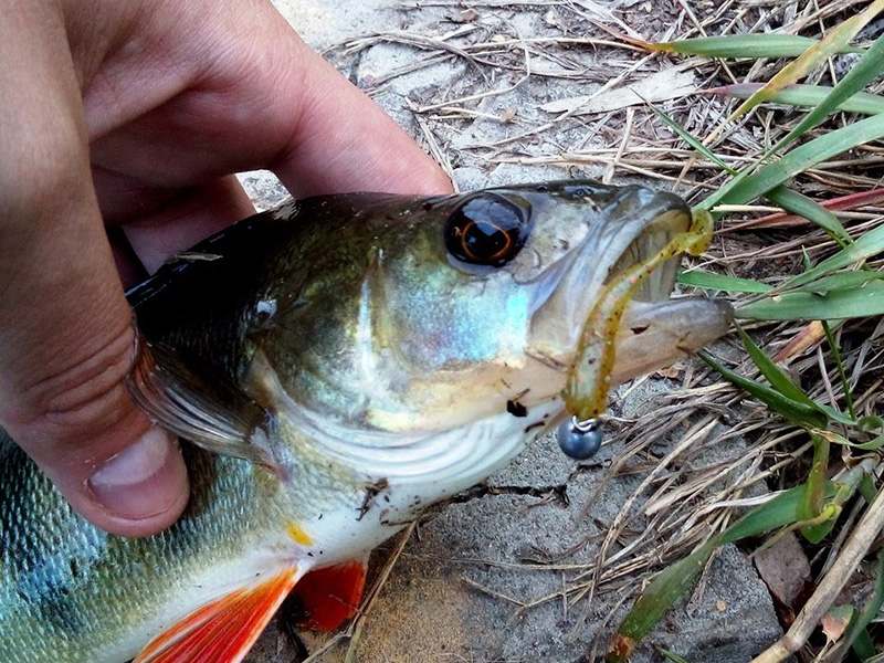 Речка была достаточно мелкая, со слабым течением. Поэтому самые ходовые веса варьировались в промежутке от 0.8 до 1.5 грамма. Перед тем, как забросить монтаж с новой для себя приманкой, я предварительно «погонял» ее под ногами. Хвост играет! И это при граммовой «чебурашке». Уже хорошо, что хоть какая-то вера в виброхвост начала появляться. А после нескольких пойманных окуней сомнения в работоспособности улетучились, а я уже оформлял заказ на несколько пачек в интернет-магазине...