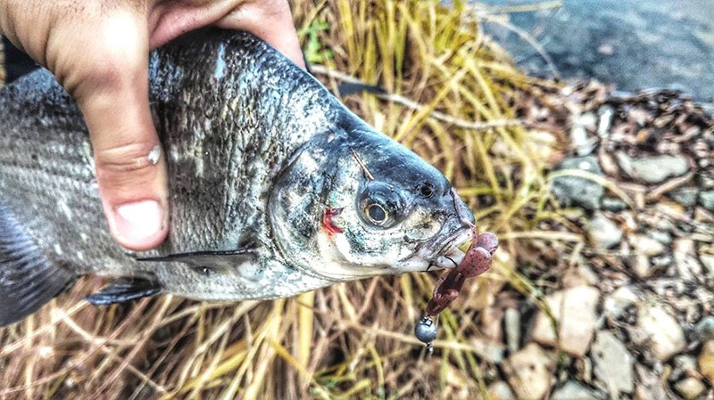 А вот самой неожиданной рыбой, пойманной на данную приманку, стал небольшой «потрепанный» подлещик, который то ли вырвался из браконьерских сетей, то ли пострадал от зубов хищника.