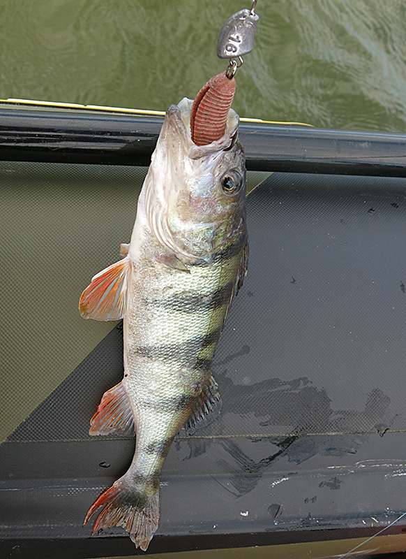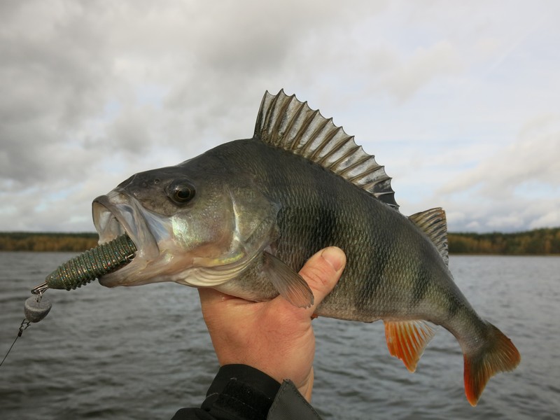 Окуня чаще ловлю на самый мелкий, а судака – на средний. Однажды в середине лета, чередуя эти два размера, ловил и полосатого, и клыкастого вперемешку. Моим же знакомым хорошие судаки попадались на самый крупный Joco Shaker.