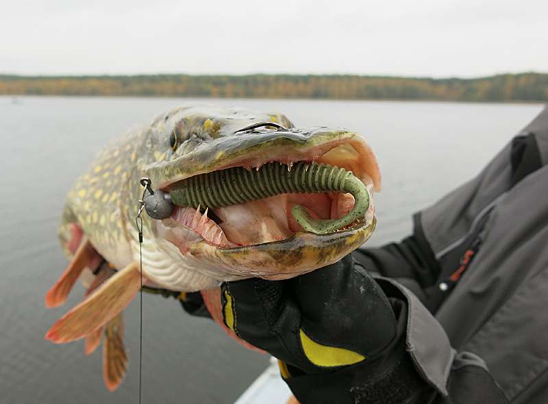 Наиболее универсальным я бы назвал цвет F08 Pione. Прежде всего, отличился он у меня по щуке, не раз будучи «лидером сезона» – на самый большой размер 4,5 дюйма было поймано немало хороших хищниц.