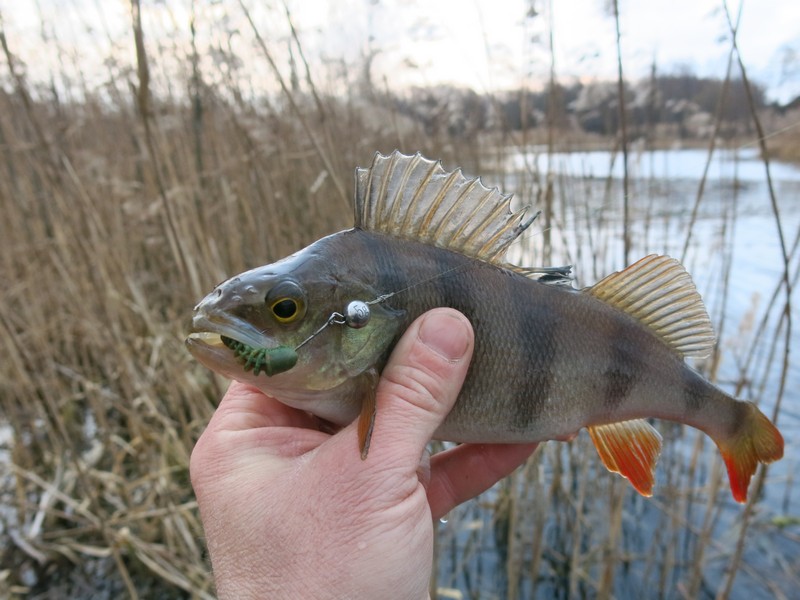 Такой выбор был обусловлен погодными условиями – всю середину марта сильно дуло, а перспективные места, где я обычно рыбачу, располагались так, что ветер был боковой или встречный. Поэтому приходилось использовать груза потяжелее, чем обычно – 5-6 г, чтобы достичь нужной дальности заброса и хорошего контроля над приманкой.