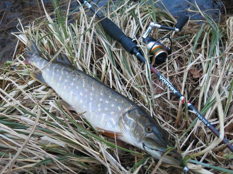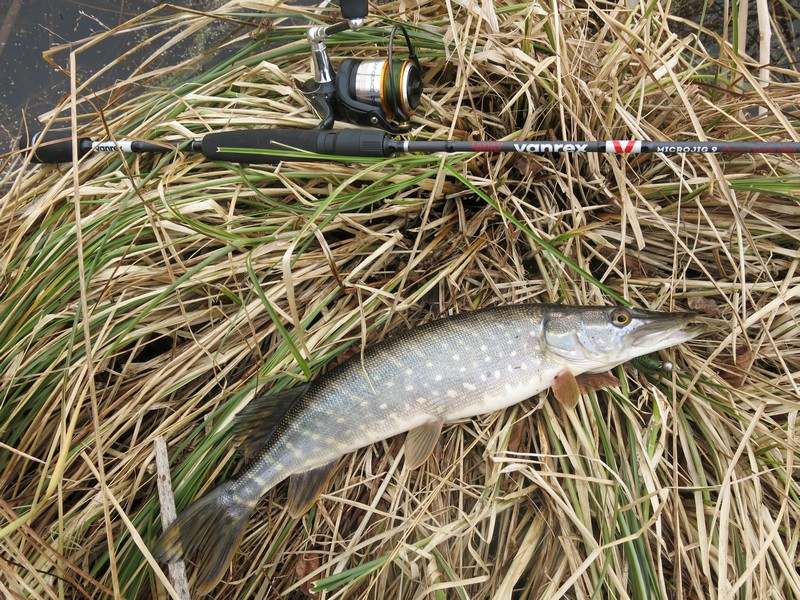 Потестировать спиннинг довелось не только на окуне, но и вездесущей щуке. На вываживании «килошек» Vanrex Microjig 9 показал хороший запас прочности.