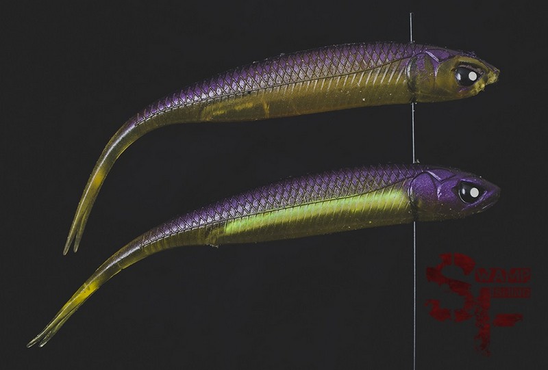 Однако же самые крупные размеры (5 и 6 дюймов) интереснее все-таки подавать именно как джерк. Тем не менее, с флюками вообще и с Makora Split Tail в частности все не так просто. Дело в том, что это все-таки неиграющая приманка и на нее едва ли удастся поймать с равномерной проводкой. Надо дергать. Но и тут закавыка – горизонтальный хвост. Более того, здесь мы видим один из самых массивных «вилочных» хвостиков в джерковом семействе. Вообще, на хвосты мягких джерков мало обращают внимание и совершенно напрасно. Потому как понимание зависимости движения от геометрии даст максимально полное представление о выгодных сторонах и о том, где и когда приманку использовать лучше.