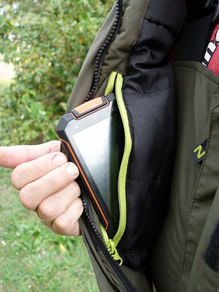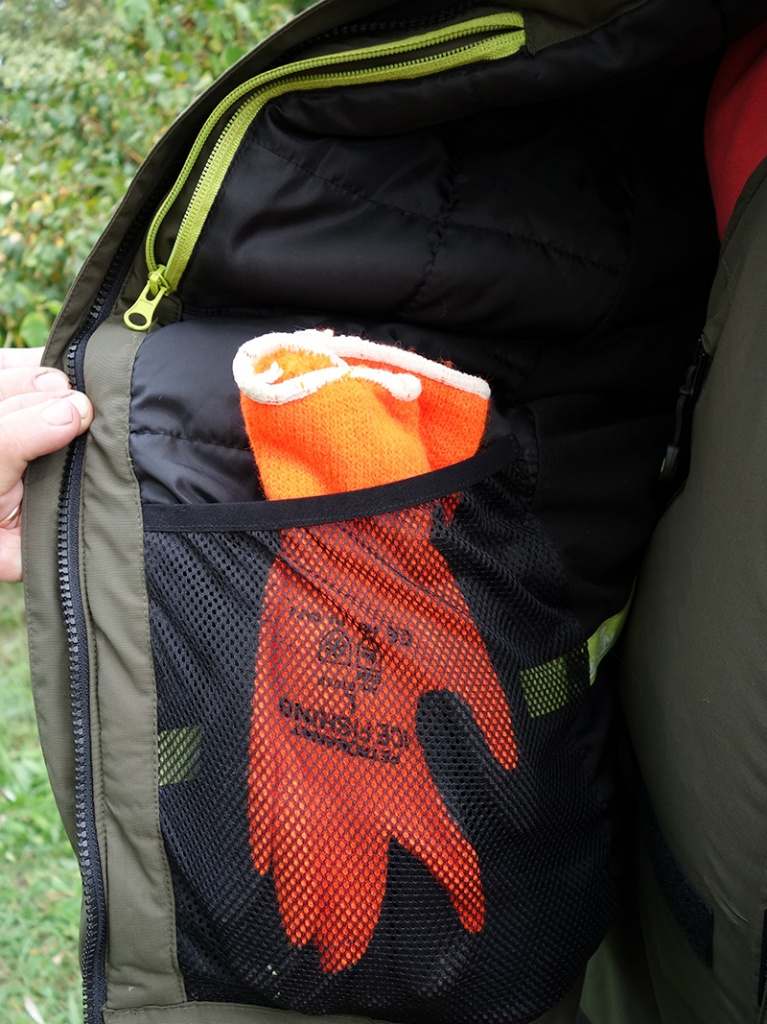 Понравилось мне и то, что на куртке всего 4 наружных кармана, и они совершенно не выступают за общие границы одежды. На фидерных рыбалках мелочевку незачем распихивать по карманам. Для этого имеется столик. Да и доставать что-либо из-под фартука не очень удобно.