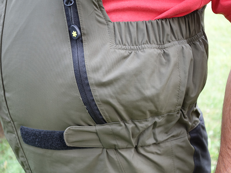 На животе имеется двусторонняя, прикрытая клапаном молния. Клапан дополнительно фиксируется «липучками». В нижней части брюк имеется еще одна молния для того, чтобы удобнее было обувать сапоги. Сверху эта молния тоже прикрыта клапаном, который фиксируется на «липучке».