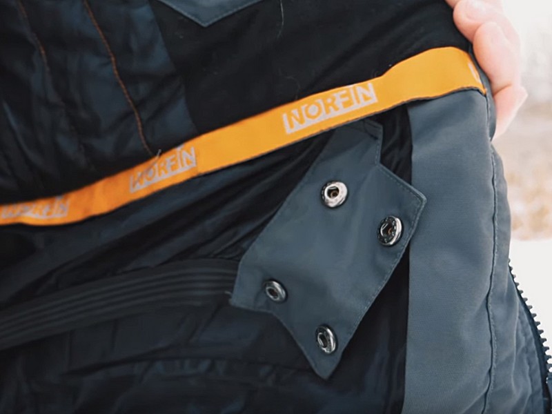 С каталоге написано, что полукомбинезон имеет «усиление материала в области колен и седалища», но карманчика с дополнительными вставками нет. При этом я все равно на мормышку ловлю с колена (в той же Карелии только так и рыбачил), надевая толстый наколенник Norfin, но дополнительный вкладыш для утепления этой части ноги не помешал бы.
