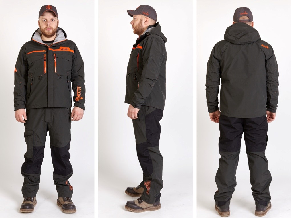 Рукава куртки и колени штанов костюма имеют объемный крой и не стесняют движений. Демисезонный костюм предназначен для комфортной рыбалки в любую погоду при невысоких положительных температурах. Он не имеет утеплителя. Мембранный материал обеспечивает надежную защиту от осадков, ветра и поддерживает оптимальную влажность внутри одежды.