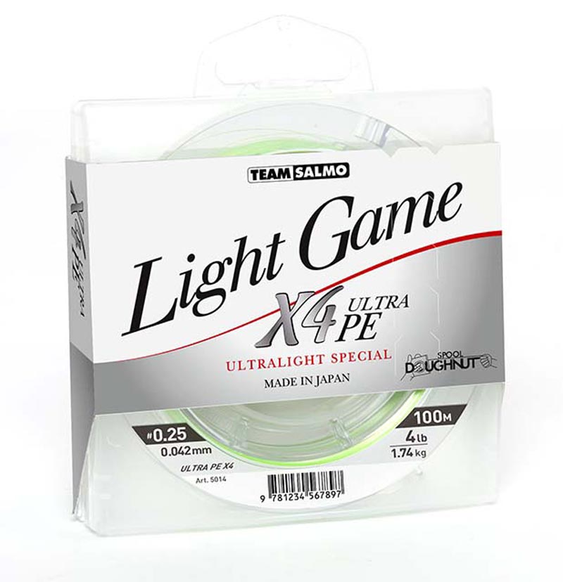 Team Salmo Light Game X4 Ultra PE – 4-жильный, очень тонкий, мягкий, скользкий и чувствительный шнур из материала Ultra РЕ.
